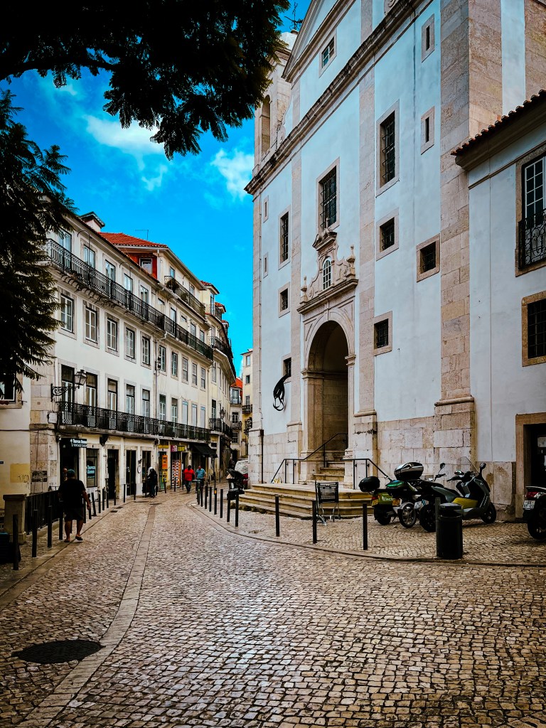 L’après-midi s’est poursuivi dans le quartier Alfama, avec ses ruelles étroites, ses façades colorées et son authenticité vibrante. Nous y avons flâné, fait un peu de shopping et laissé nos pas nous mener jusqu’aux rives du Tage. Sous un ciel éclatant et une chaleur de 24 °C, nous avons savouré un popsicle maison à la framboise trempée dans le chocolat, une petite douceur rafraîchissante qui s’accordait parfaitement avec l’ambiance estivale.