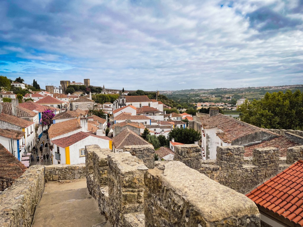 Le départ s’est fait tôt, à 8h, sous un ciel encore doux. Première étape : Óbidos, une charmante cité médiévale accrochée à flanc de colline. Son château domine fièrement le village, entouré de remparts qui semblent veiller sur le temps.