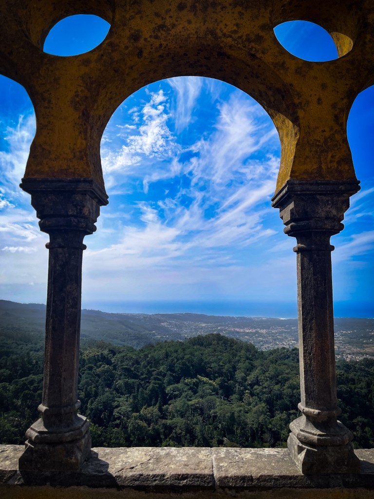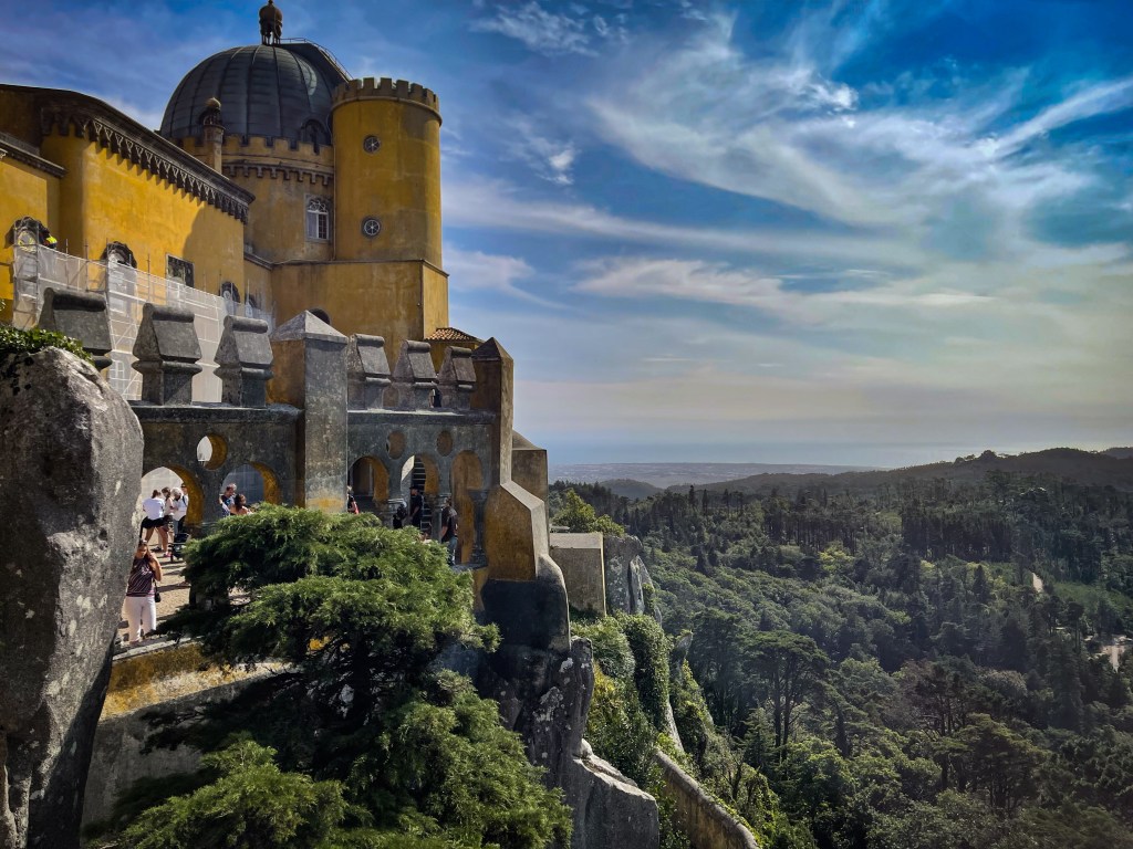 Et puis, soudain, il apparut : ce palais coloré et fantaisiste, mélange d’architecture romantique, gothique et mauresque, dressé fièrement au-dessus des nuages. Chaque terrasse offrait une vue panoramique sur la vallée et sur l’océan lointain. Ses murs jaunes, rouges et bleus, ses tours extravagantes et ses détails artistiques racontaient l’histoire d’un Portugal riche et poétique.