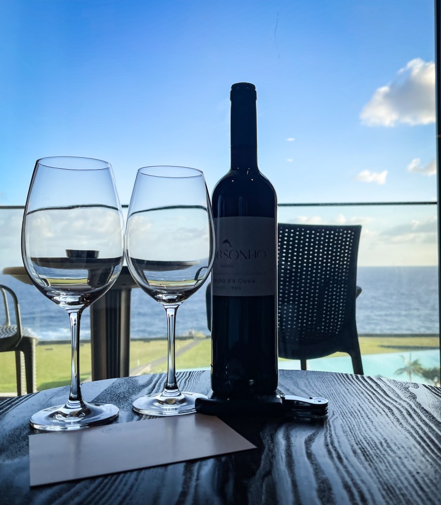 En fin de journée, nous avons regagné notre hôtel, le cœur rempli de ces instants simples mais précieux. Sur le balcon, un souper de produits frais nous attendait, accompagné d’un vin portugais aux arômes profonds. Face au ciel s’embrasant au-dessus de l’Atlantique, nous avons savouré chaque gorgée, chaque souffle, chaque silence.